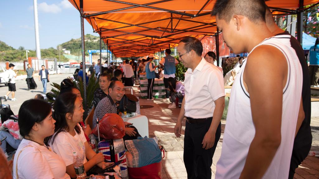 上午,安顺学院党委书记罗荣彬等学校领导一行走访迎新现场,亲切看望前来报到的新同学和家长,勉励新同学要刻苦学习,勇于逐梦,并慰问参加迎新工作的教职工和学生志愿者,对校内设置的咨询服务站和能量补给站表示肯定。